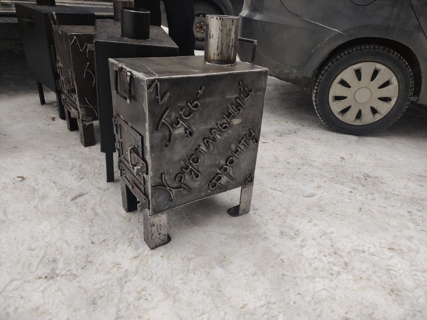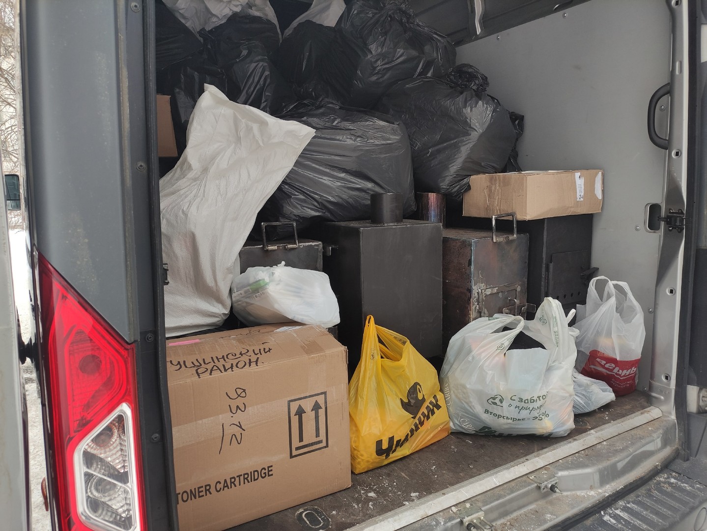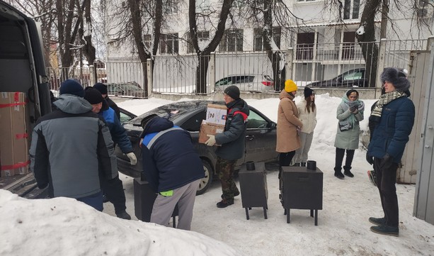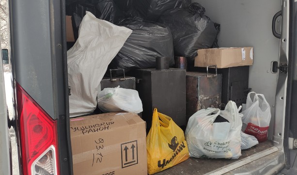 Военнослужащим отправились 15 печек для обогрева помещения, которые студенты 33-го региона сделали своими руками, а также 50 коробок и мешков с вещами первой необходимости и поздравлениями от деток Владимирской области для обогрева сердец