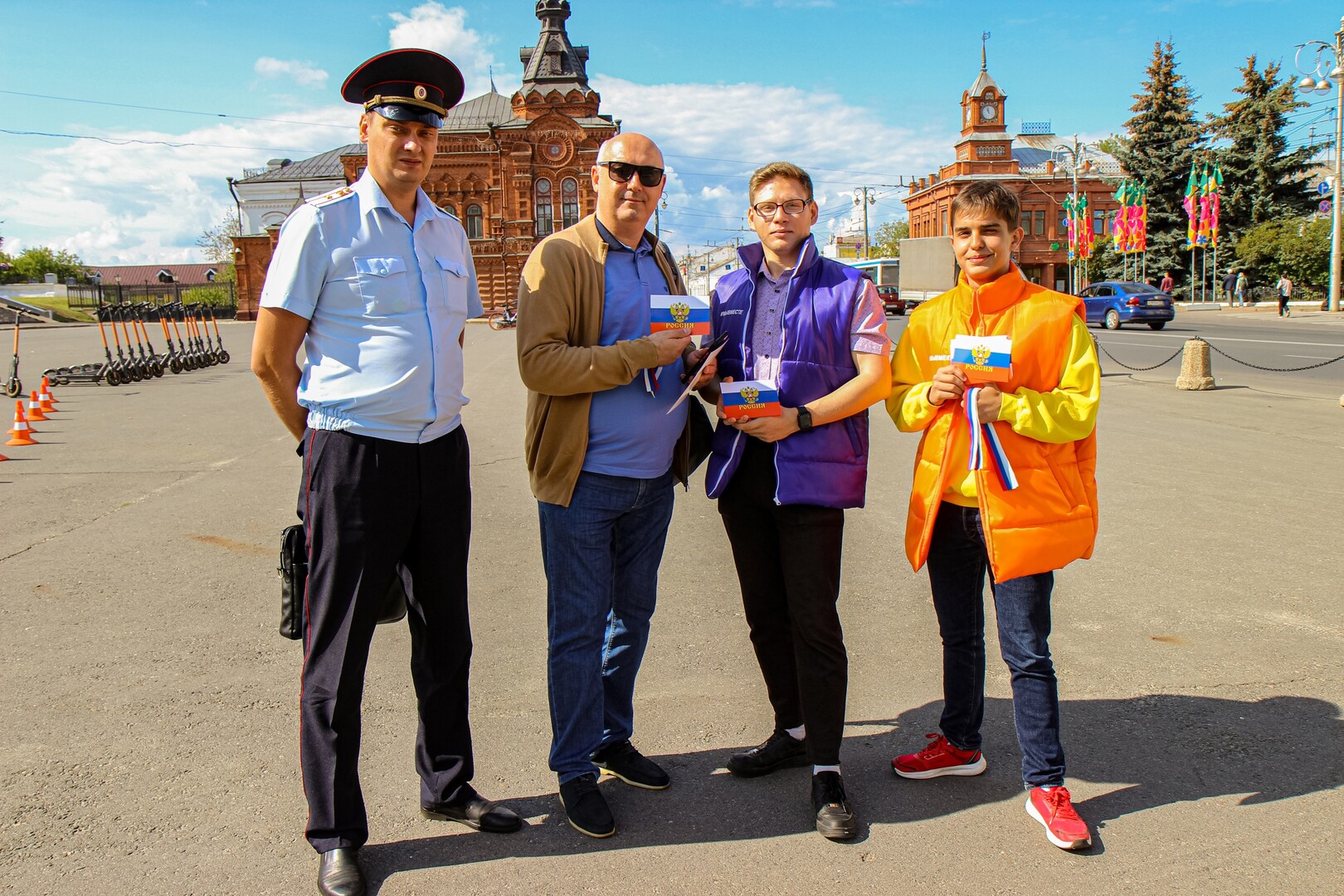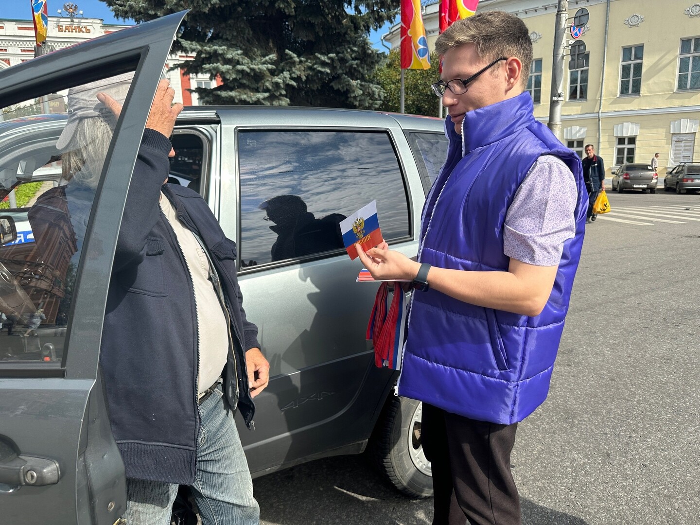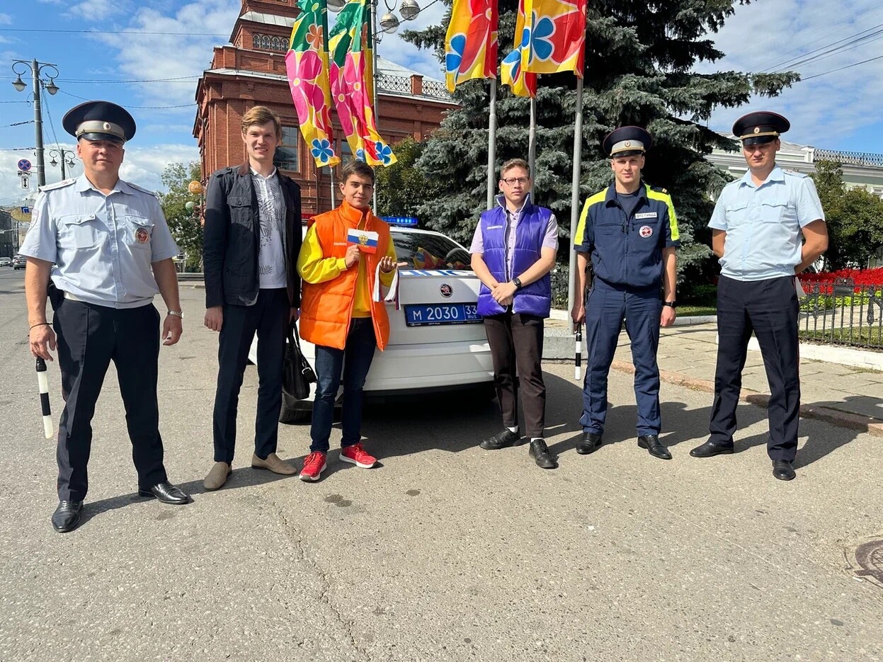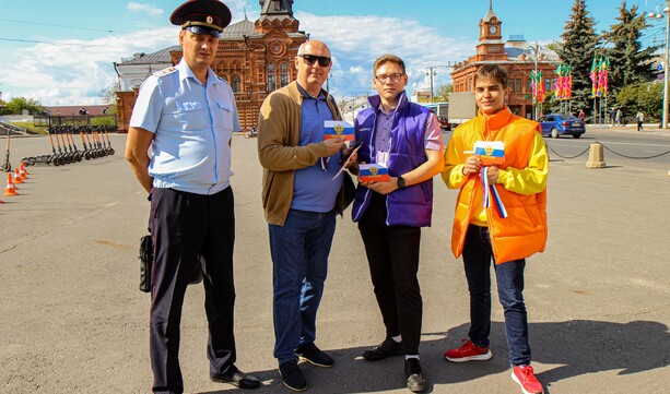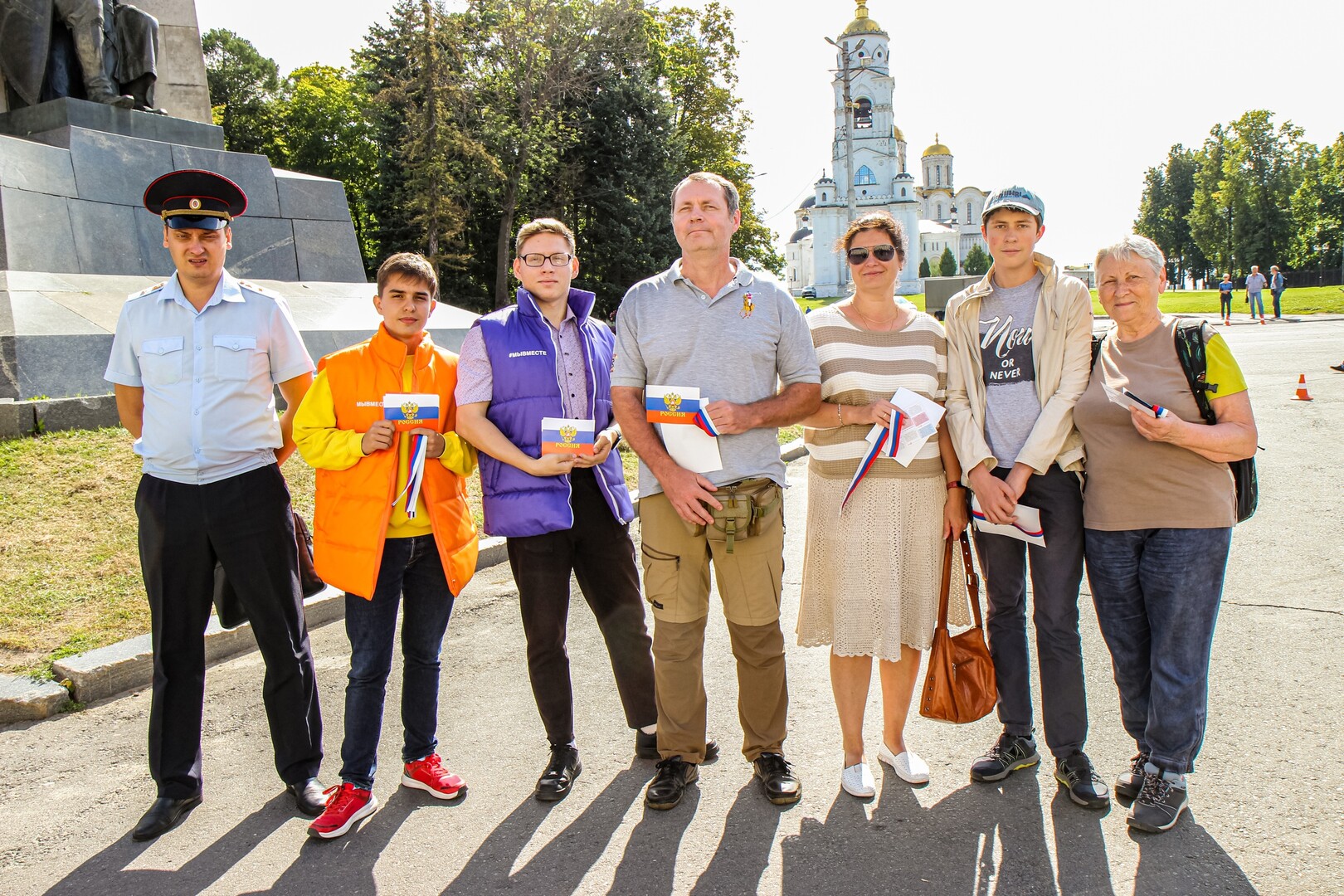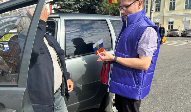 Сотрудники УМВД России по Владимирской области вместе с активистами Ресурсного центра добровольчества вручили жителям и гостям столицы Владимирской области ленты с триколором Государственного флага Российской Федерации, а также флаеры от учебно-методического центра военно-патриотического воспитания молодёжи «Авангард» Владимирской области с историей нашего флага.