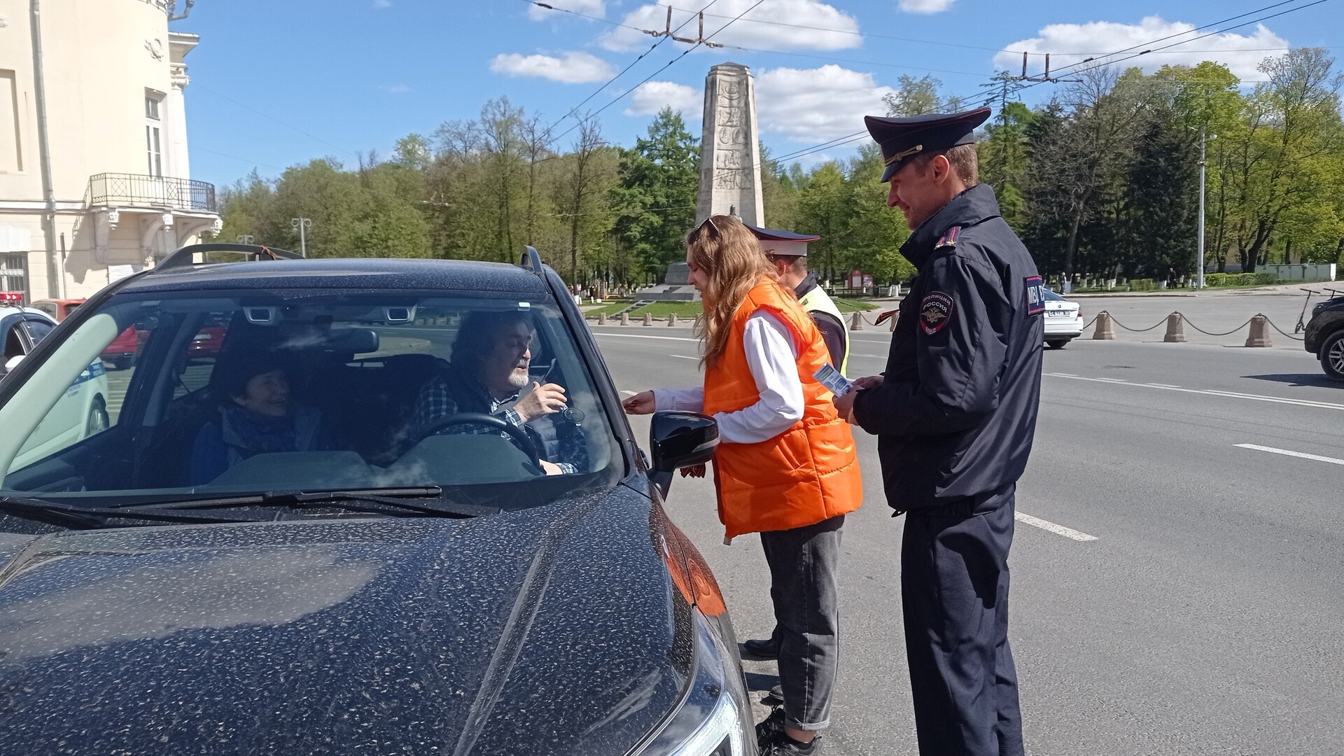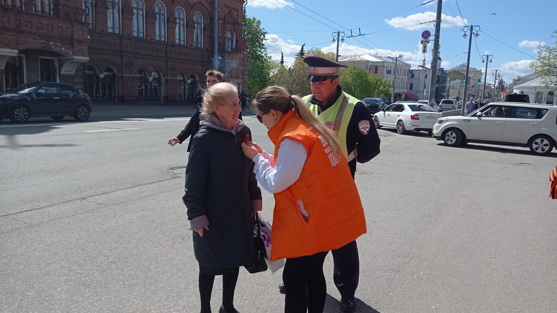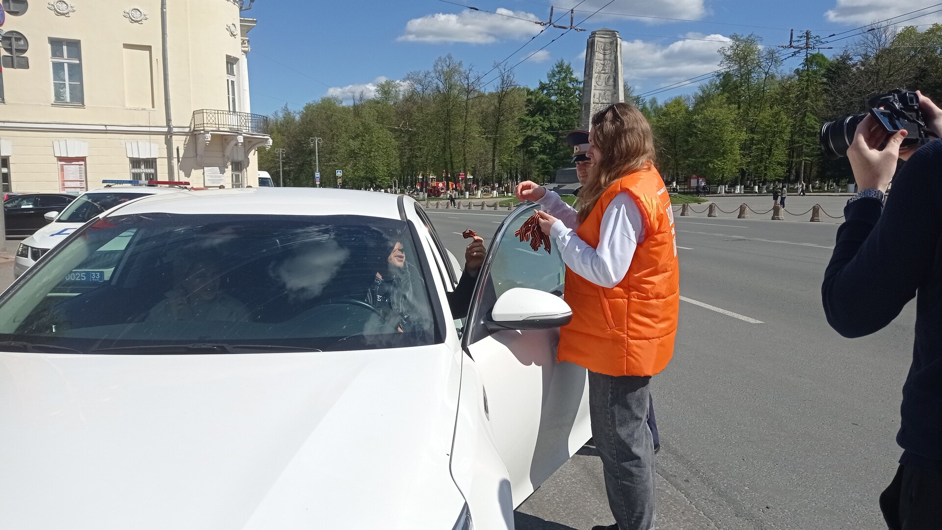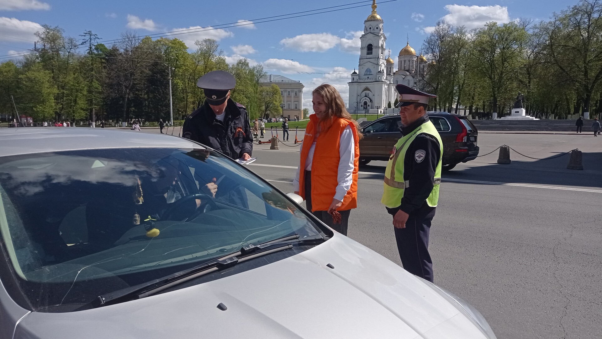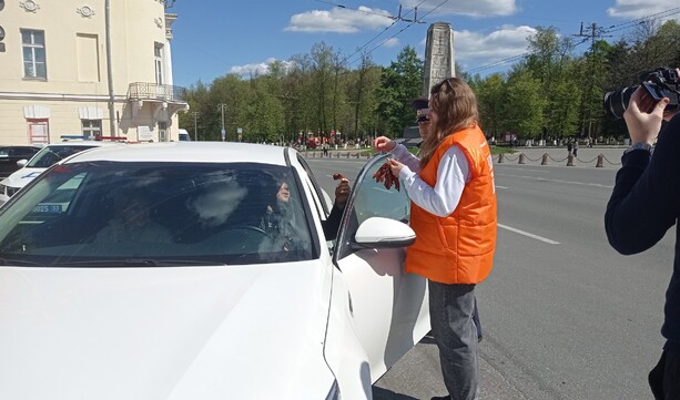 Благодаря сотрудникам ГИБДД и полиции поздравили автомобилистов и жителей города с наступающим праздником Победы, вручили Георгиевскую ленту, а также рассказали о том, как ее правильно носить