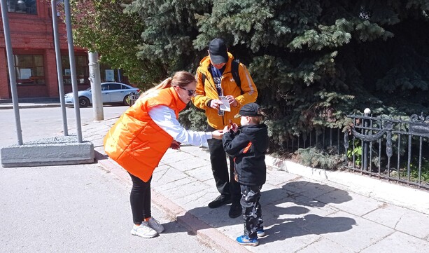 В области продолжают проходить праздничные акции наш Ресурсный центр совместно с активистами Доброштаба в четверг (4 мая) провели акцию «Георгиевская лента» на улицах города Владимира